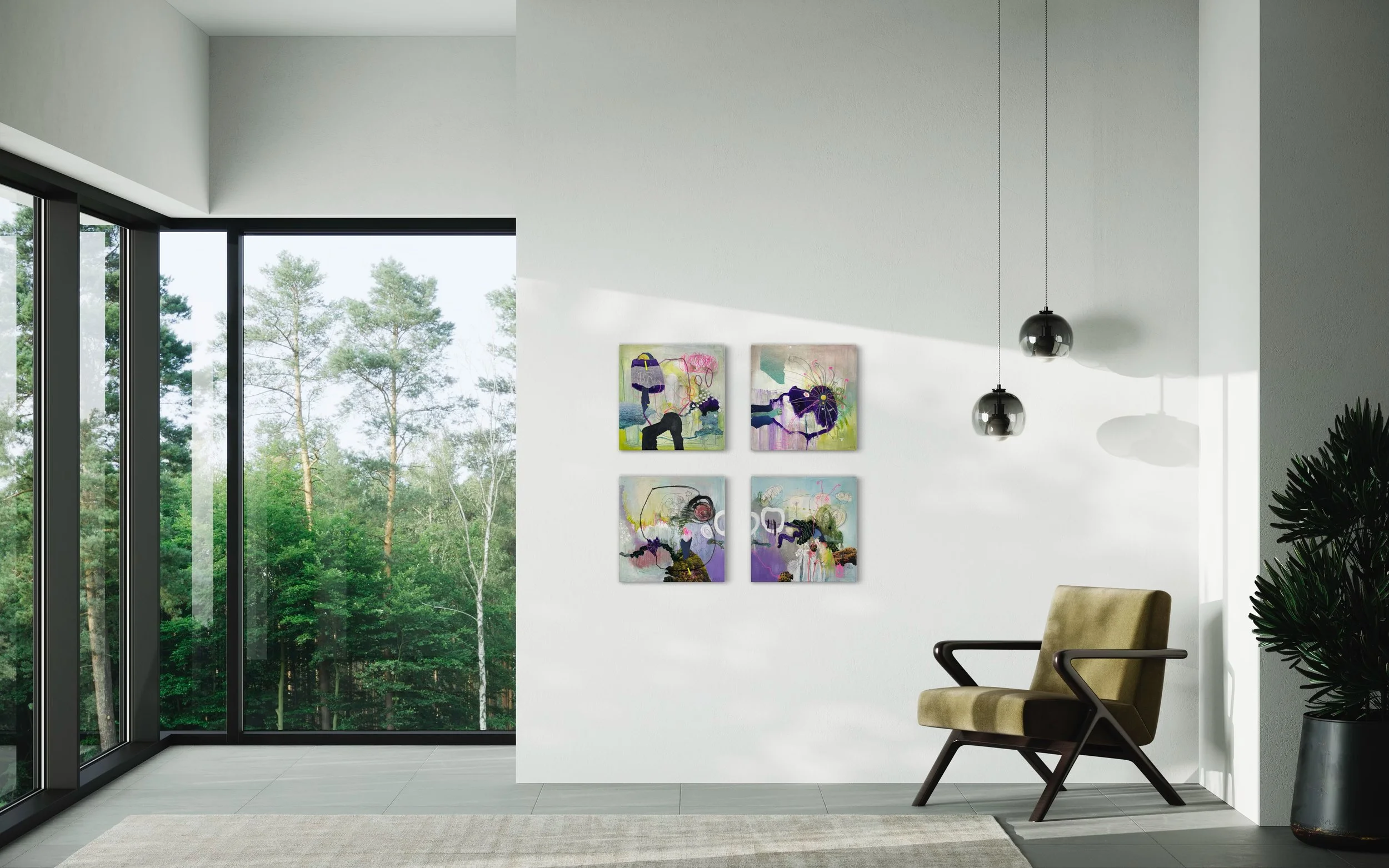 Sende mir gern ein Foto des Raumes zu. Ich baue Dir das Werk dort virtuell dort ein, damit Du Dir besser vorstellen kannst, wie es in den Raum hinein wirkt.