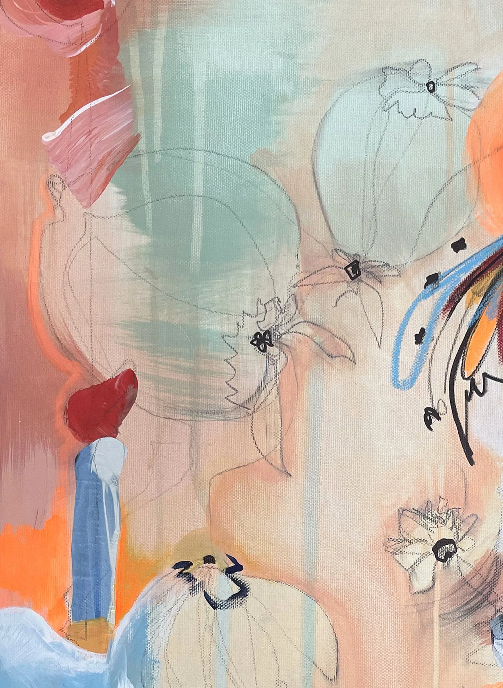 Die alten Linien bleiben sichtbar. Sie stören nicht. Im Gegenteil: Sie geben dem Neuen Tiefe, erzählen von früheren Versuchen und helfen, die Richtung zu spüren. Jeder neue Strich – selbst der zögerliche – macht das Bild vollständiger.