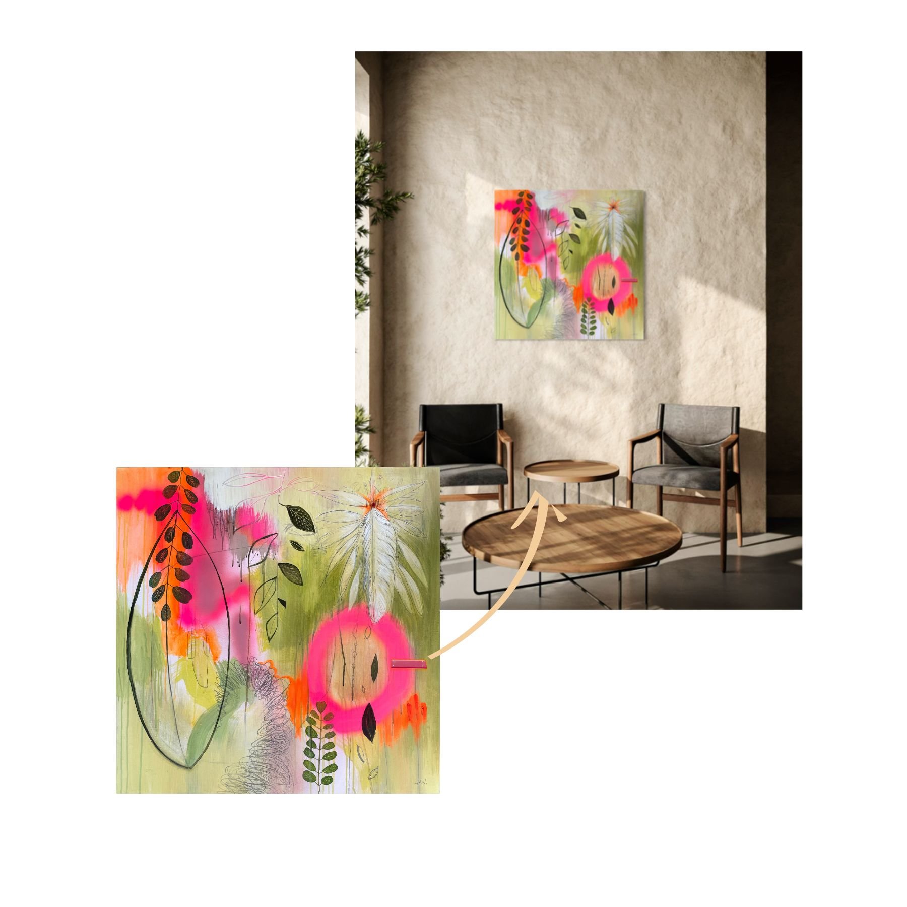 Du erhältst eine realitätsnahe Visualisierung des Kunstwerks in deinem eigenen Raum. So siehst du vorab, wie Größe, Wirkung und Farbklang im Zusammenspiel mit deiner Architektur funktionieren – klar, verbindlich und ohne Überraschungen.