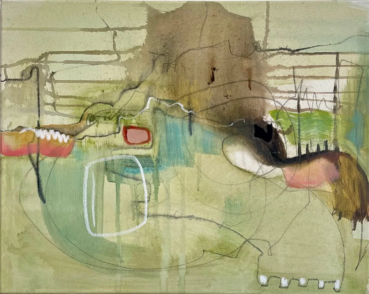 Pastellige Blau- und Grüntöne, die die Tiefe des Wassers und die Zartheit der Natur einfangen. Impulsive Strukturen setzen kraftvolle Akzente, während zarte Lasuren eine fast meditative Leichtigkeit schaffen.