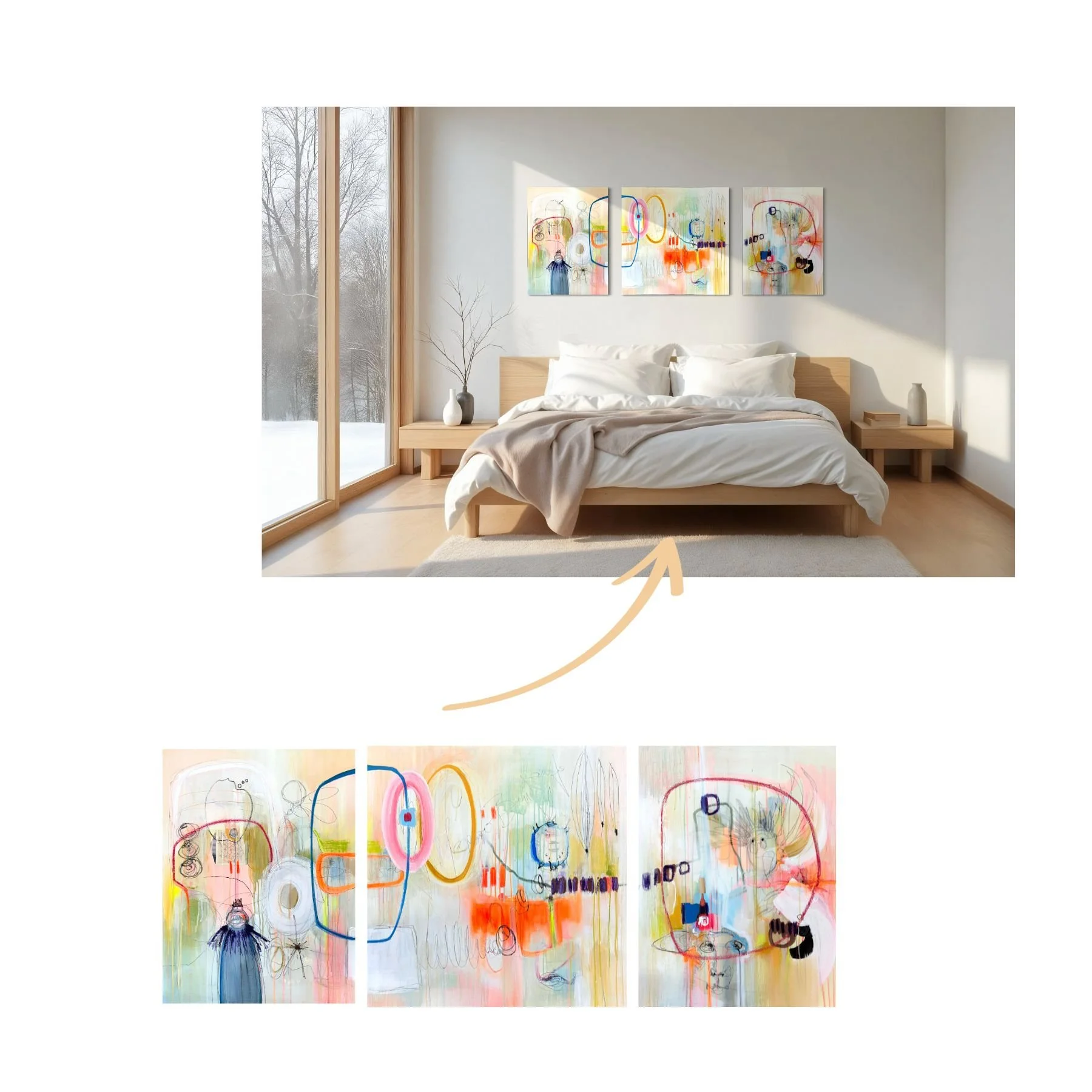 Sende mir gern ein Foto des Raumes zu. Ich baue Dir das Werk dort virtuell dort ein, damit Du Dir besser vorstellen kannst, wie es in den Raum hinein wirkt.