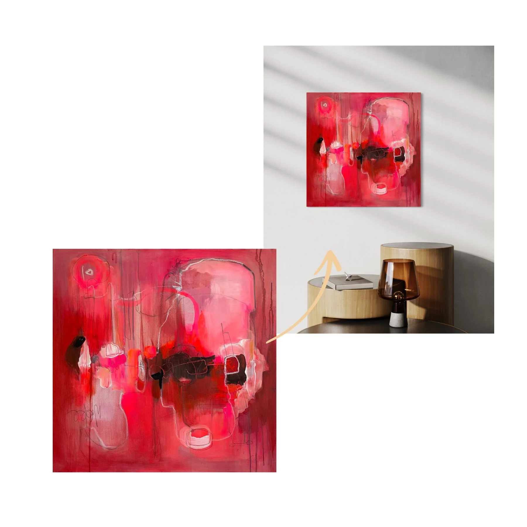 Du erhältst eine realitätsnahe Visualisierung des Kunstwerks in deinem eigenen Raum. So siehst du vorab, wie Größe, Wirkung und Farbklang im Zusammenspiel mit deiner Architektur funktionieren – klar, verbindlich und ohne Überraschungen.