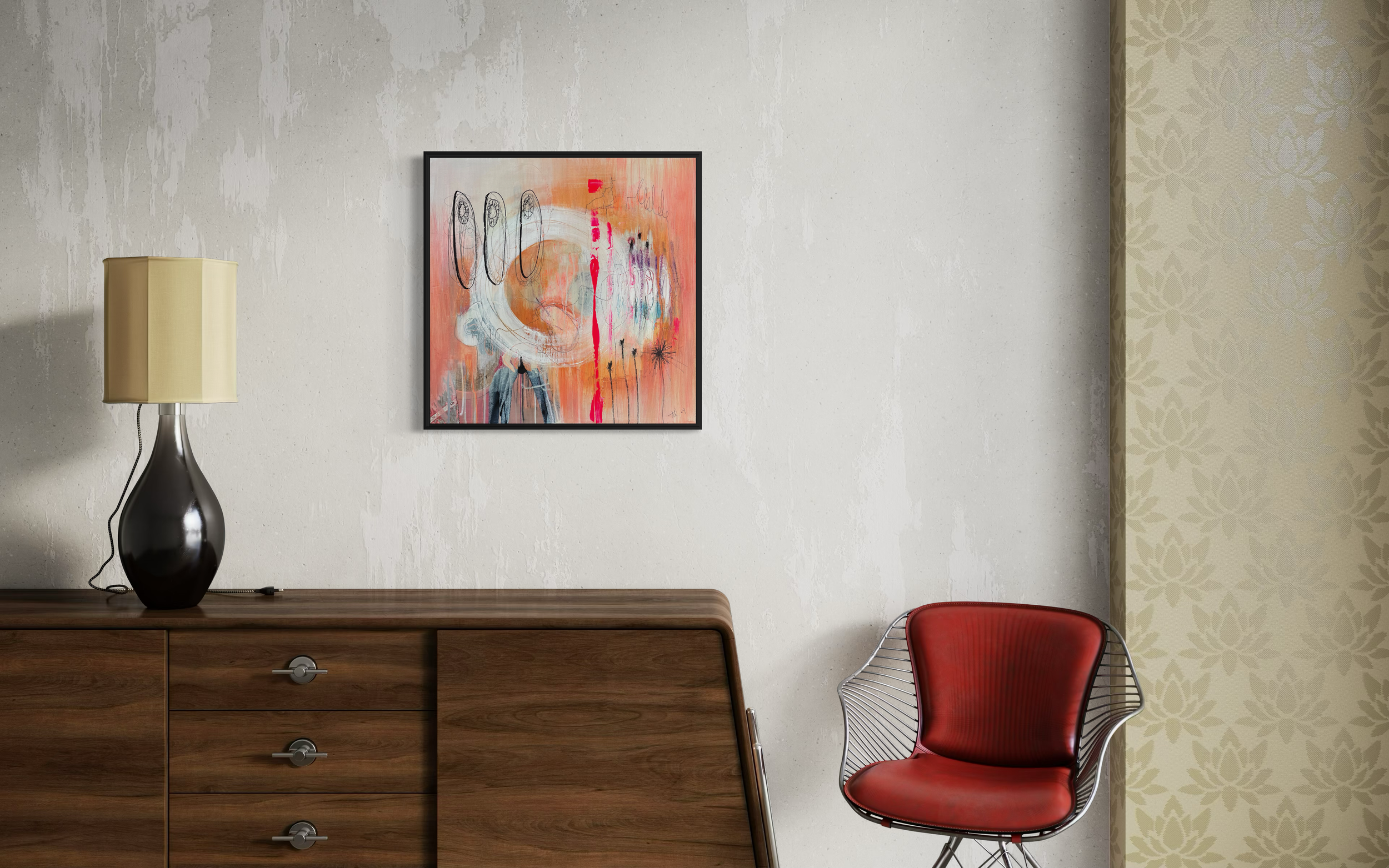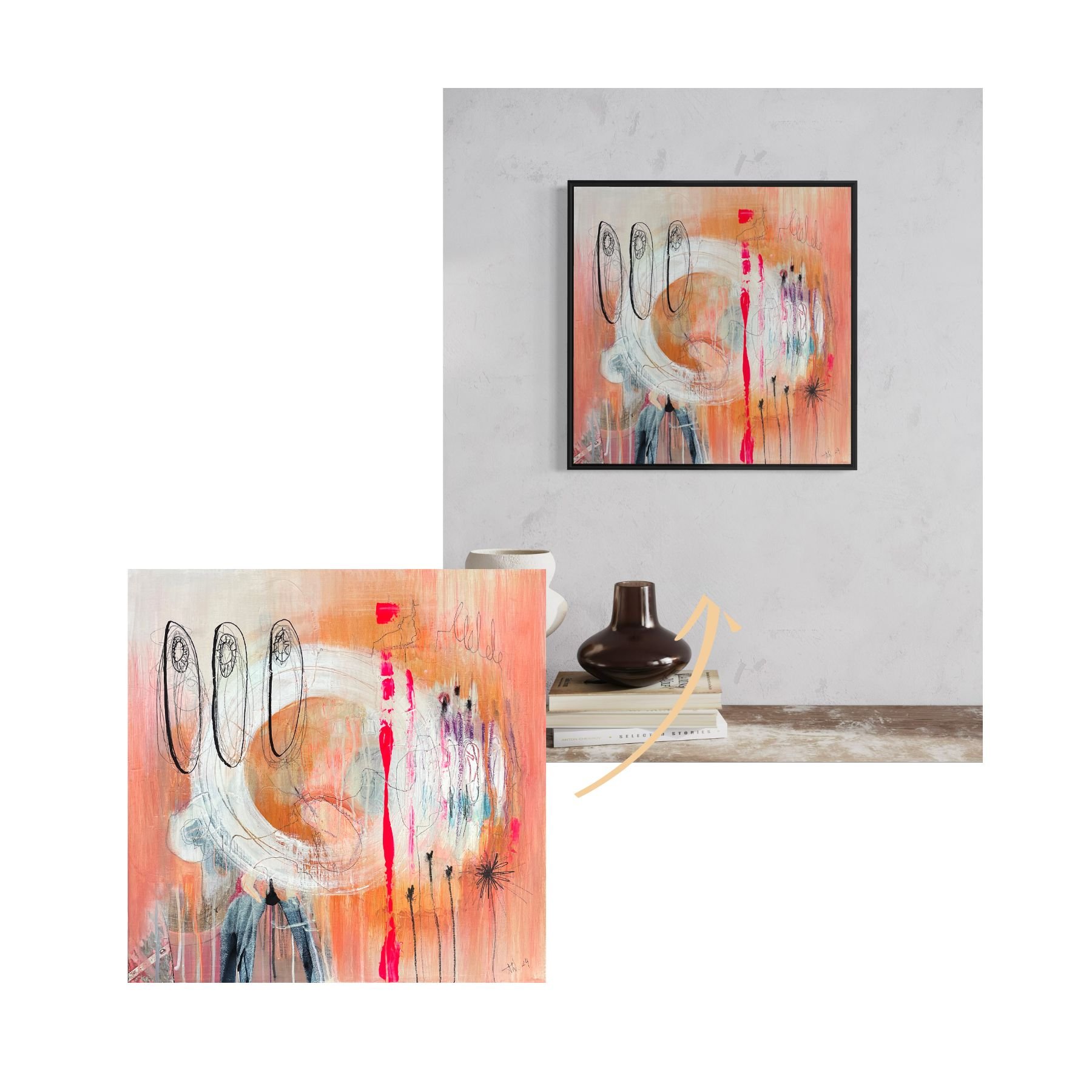 Du erhältst eine realitätsnahe Visualisierung des Kunstwerks in deinem eigenen Raum. So siehst du vorab, wie Größe, Wirkung und Farbklang im Zusammenspiel mit deiner Architektur funktionieren – klar, verbindlich und ohne Überraschungen.
